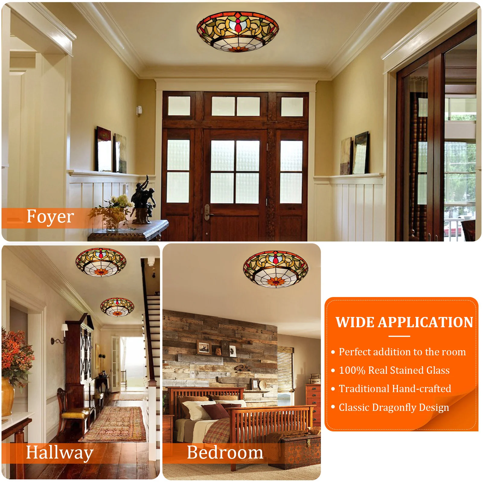 [Stunning Tiffany Ceiling Light] Let this great looking tiffany light fixtures ceiling decor your room! Wide 16 inch and height 4.5 inch, the perfect size makes it not too big and fit any room, it will become a gorgeous addition to home remodel.