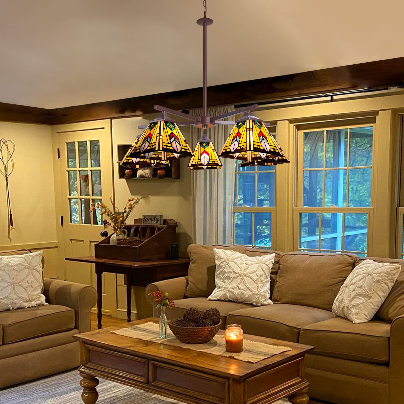 - TIFFANY CRAFTSMAN STYLE LAMPS give a soft glow and calming warm light, it creates beautiful and relaxing ambience to the house. Stained glass kitchen chandelier is a perfect addition for Living room, Dining room, Kitchen and Foyer entrance.
