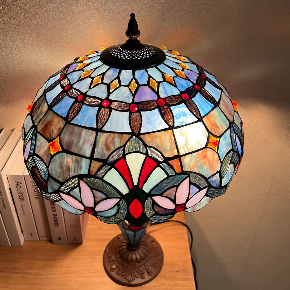 - Real Tiffany Lamp shade: lamp shade is handmade by skilled craftsmen,Each small piece of stained glass of the lampshade is spliced by copper foil method,victorian design style,never fade color,durable and beautiful