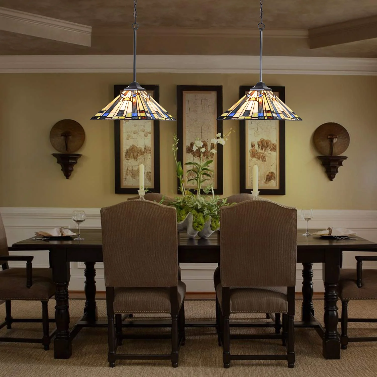 - Layout kitchen dining room: When you light bulb up,Tiffany lamp shade enhance kitchen island and make it come alive with color,Obtain very pleasant ambiance lighting