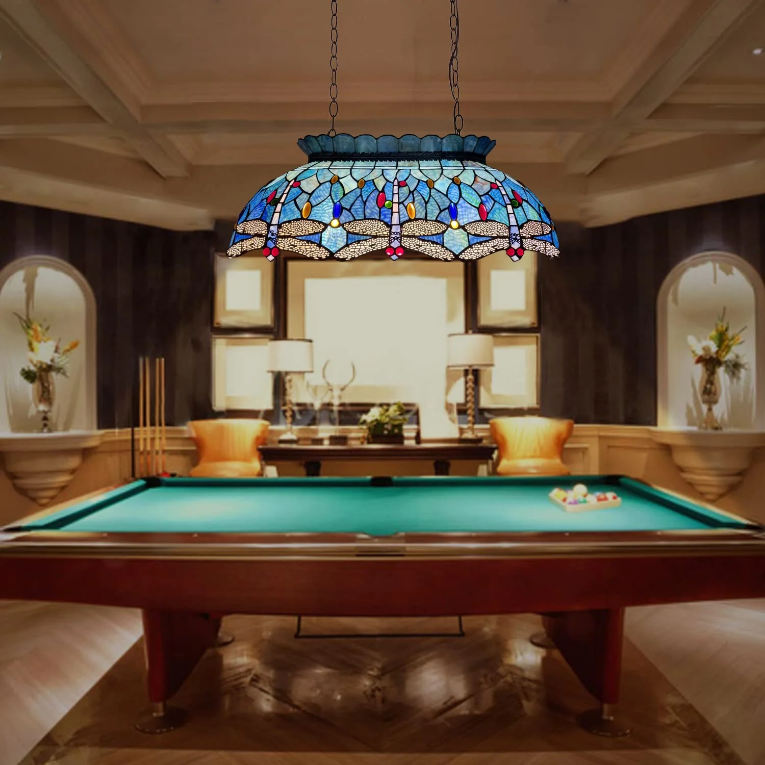 - Decor pool table dining room: When you light bulb up,Tiffany lamp shade emit light adding beautiful ambience to the room and make it come alive with color,put out a nice hue for the dining room with a splash of color