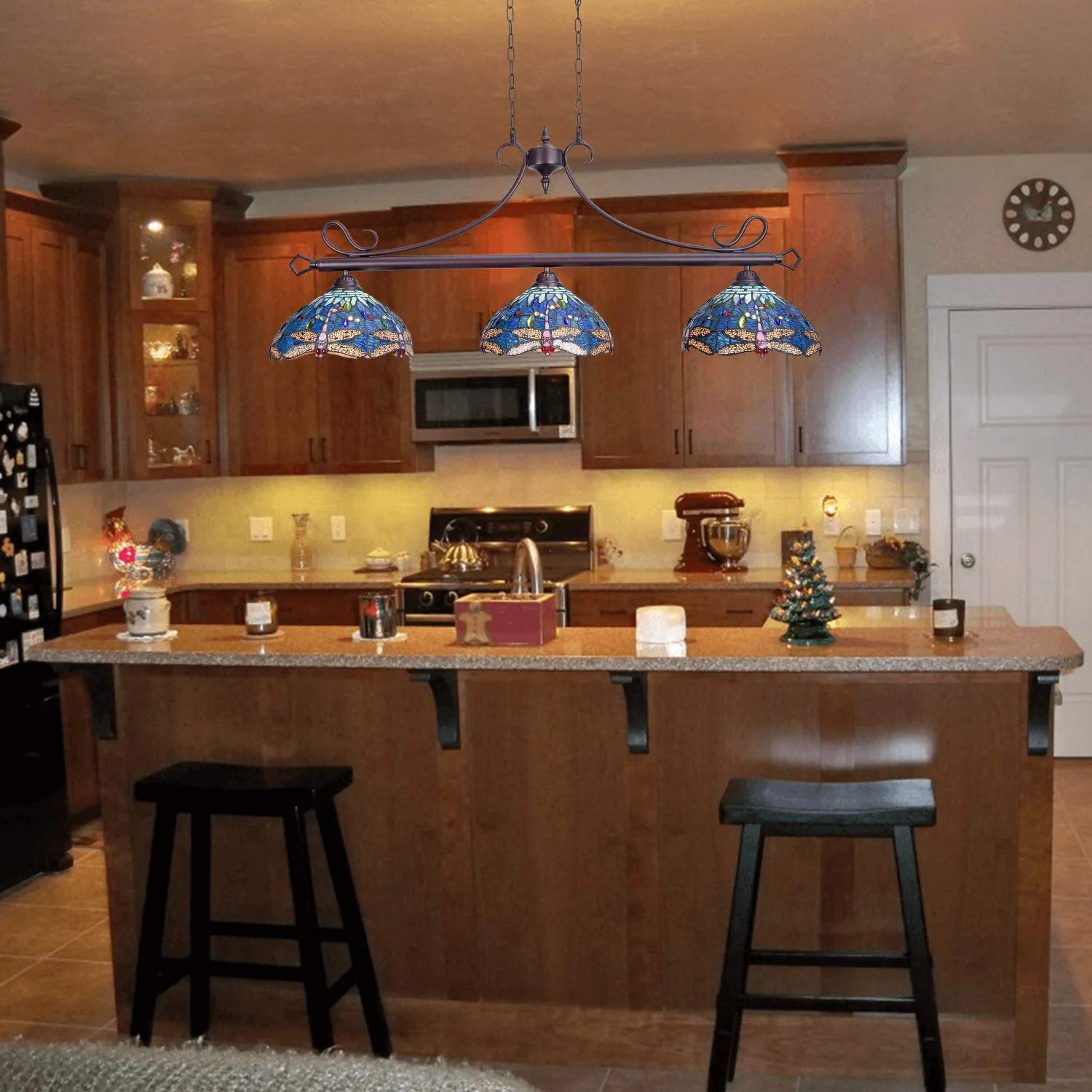 Capulina Tiffany Pool Table Lights 3-Light 45 Inches Wide Pendant Light Antique Blue Dragonfly Style Farmhouse Chandelier for Dining Room Kitchen Island