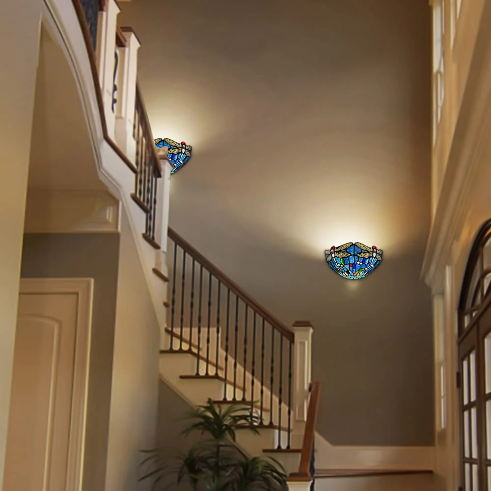 Capulina Tiffany Wall Sconces 12 Wide Stained Glass Vintage Dragonfly Style Wall Light for Hallway Stairway Bedroom